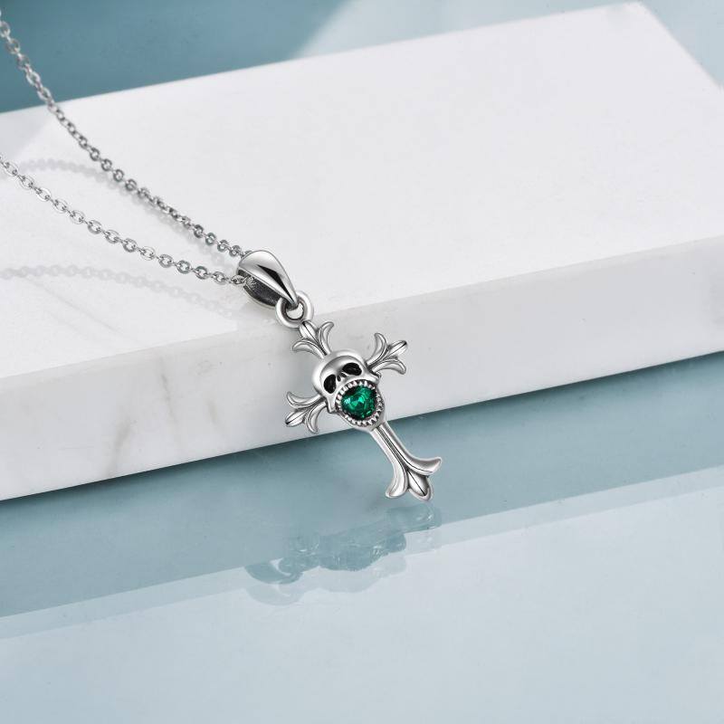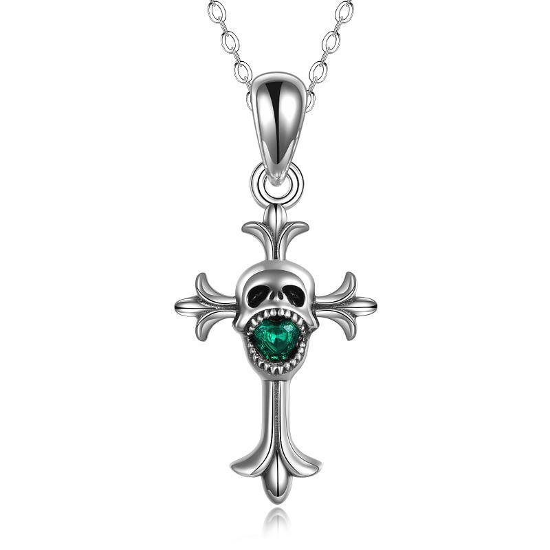 Green love crystal is hidden in the mouth of the skull, crystal symbolizes the heart, skull guard the heart of the wearer, this amulet as a gift to your loved ones, can give the wearer courage and strong will, but also to protect the soul. Unlike traditional crosses, the cross part of this necklace is partly patterned and combined with an oxidized skull, and the crystal clear green crystal adds to the high-level feel of the entire chain, reflecting the wearer's low-key luxury. This necklace is well-made, lightweight and comfortable to wear.